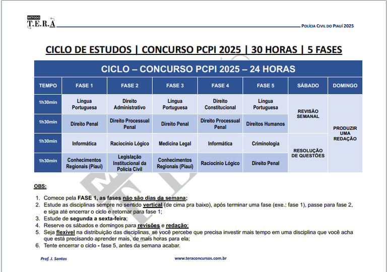 Cronograma em CICLOS com METAS diárias das disciplinas com o Edital
